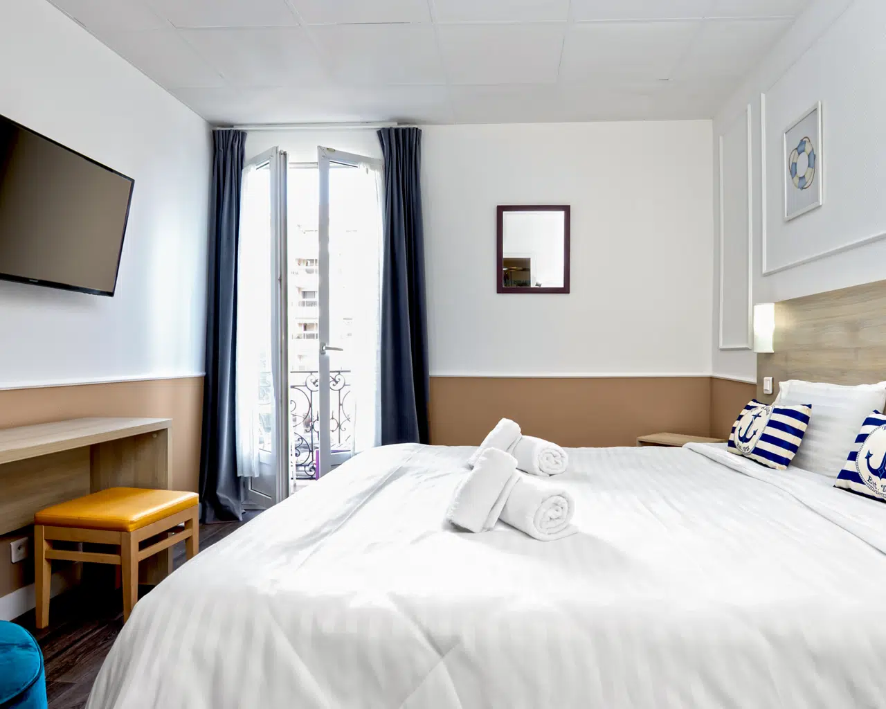 Ya viaje en pareja, en familia o solo, el Hotel Parisien se adapta a sus deseos. Cada espacio está diseñado para su bienestar y descanso, a solo unos pasos del Mediterráneo y las playas de Menton.